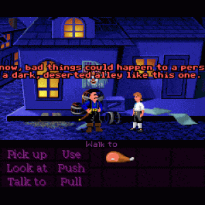 C'est ainsi que commence cette quête, développée par LucasArts en 1990, sur PC. Ce n'est bien sûr pas le premier jeu du genre à sortir (les premiers jeux d'aventures sont sortis à la fin des années 1970), mais Monkey Island reste dans les mémoires comme une référence du genre, tant par son ambiance que par sa narration.