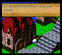 - Montez les premiers escalier, puis allez dans le coin supérieur droit de la première maison. Appuyez sur A pour recevoir un conseil d'une personne que vous ne voyez pas. [+]