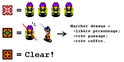 Après vous être occupé des monstres qui en sortent, celui-ci deviendra vert et vous aurez à marcher dessus pour le scellé, ce qui permettra en même temps de libérer un être vivant, de créer un passage ou de faire apparaître un coffre.