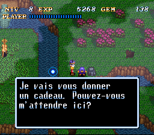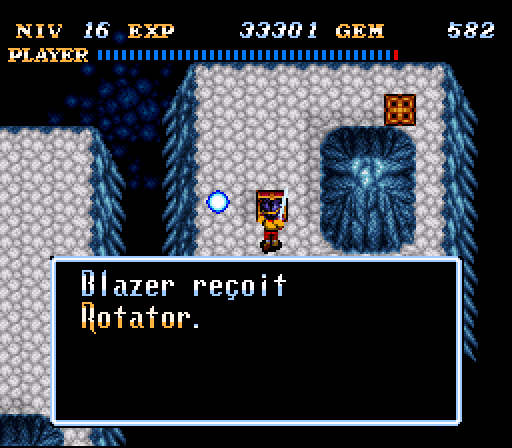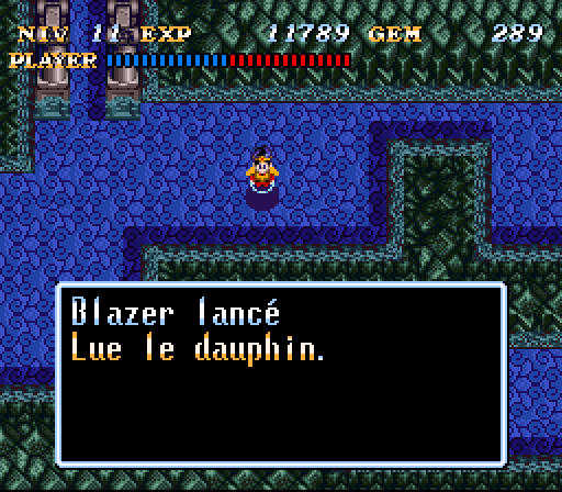 Dirigez-vous vers le nouveau passage pour arriver dans la partie nord-est de la Mer de St.Elles. Allez vers le nord en faisant bien attention au courant, et vous pourrez empruntez un escalier. [+] Vous arriverez sur Blester, l'île de la pluie. Équipez-vous de l'Anneau Tonnerre, il vous permettra de faire appel à la foudre du Maître si vous vous approchez des pyramides de foudre. [+] C'est la seule solution pour tuer les gorilles de fer de cette zone. Une fois que vous les aurez vaincus ainsi que tous les autres monstres de l'île, vous pourrez retourner au Sanctuaire de la Mer. Parlez à la statue que vous avez libéré pour ouvrir le dernier passage sous la Mer. [+] Allez ensuite voir le dauphin près de Lue, celui qui dort. Toucher-le avec votre Baguette du Rêve pour pénétrer dans son rêve. [+] À l'intérieur, donnez-lui la perle que vous avez trouvée un peu plus tôt et marchez sur l'interrupteur pour ouvrir un nouveau passage. [+]
