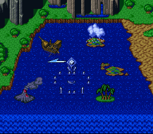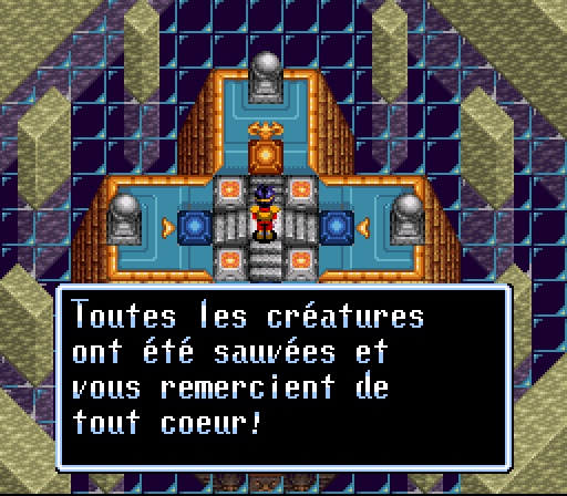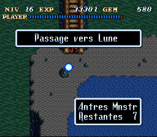 Vous arriverez au Lac Souterrain de Lune. Inutile de préciser que vous devrez de nouveau battre tous les monstres de la zone. Allez sur votre droite et montez. Tout au nord, sur la gauche, vous aurez un bloc vous menant à la salle du Maître. [+] Profitez-en pour vous revigorer et sauvegarder. Cela fait, dirigez-vous vers l'entrée de l'antre du boss de ce monde : Poséidon. [+] Quand il sera vaincu, il libérera le Roi de son maléfice.