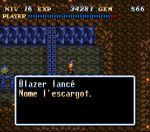 Allez ensuite parler à Nome en prison, il vous remettra la Pierre Argent. [+] Puis allez voir le champignon qui dort dans la cellule de gauche. Utilisez votre Baguette du Rêve sur lui. [+] Appuyez sur l'interrupteur, et essayez de vous aventurez sur la gauche afin qu'il vous ramène. Retournez sur les lieux, dans le Lac Sousterrain de Lune. À l'endroit où il y avait le champignon dormeur, vous trouverez à terre l'Emblème F du Maître. [+] Sur la gauche, vous pourrez battre le dernier antre de monstres de la zone, qui contient des chauves-souris, afin de libérer un escargot.