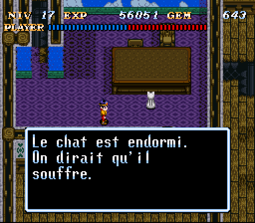 Retournez à l'ascenseur dans le donjon, qui marche à présent. Allez à droite, puis montez où il y a des monstres entre deux flambeaux. Vous pourrez libérez Lisa de son maléfice en tuant les monstres. [+] Continuez votre chemin de sorte que vous tuiez tous les monstres que vous rencontrerez. Lorsque vous ne pourrez plus rien faire, retournez au village et allez voir Lisa qui dort dans sa maison (complètement à droite). Utilisez votre Baguette du Rêve pour entrer dans son rêve. [+] L'interrupteur vous permettra d'avancer dans le donjon. Retournez-y et prenez le passage que vous venez de créer pour trouver le Pinceau de Léo. [+]