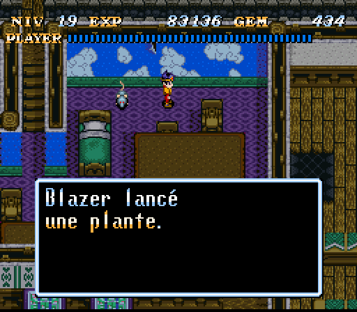 Avant de démarrer le Vaisseau, je vous recommande fortement d'aller chercher le Super Bracelet. Il est à l'endroit où la Reine était, à l'extérieur. [+] Si vous n'avez plus d'Herbe Médicinale, vous pouvez aller voir la servante, dans l'habitation du bas. [+] Maintenant, retournez au Vaisseau et insérez la clef dans le gouvernail. [+] Le boss du niveau, l'Oiseau de Feu, apparaîtra alors. Une fois vaincu, vous libérerez le Roi Magridd. Après une discussion avec Lisa, retournez au Château.