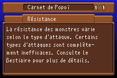 Dans le carnet de Popoï, vous pourrez obtenir une liste 119 monstres. Il suffit de vaincre un monstre une fois pour qu'il soit enregistré dans le carnet. Vous y trouverez aussi les MEMO contenant des trucs et astuces et une carte du Monde bien pratique avec le nom des lieux.