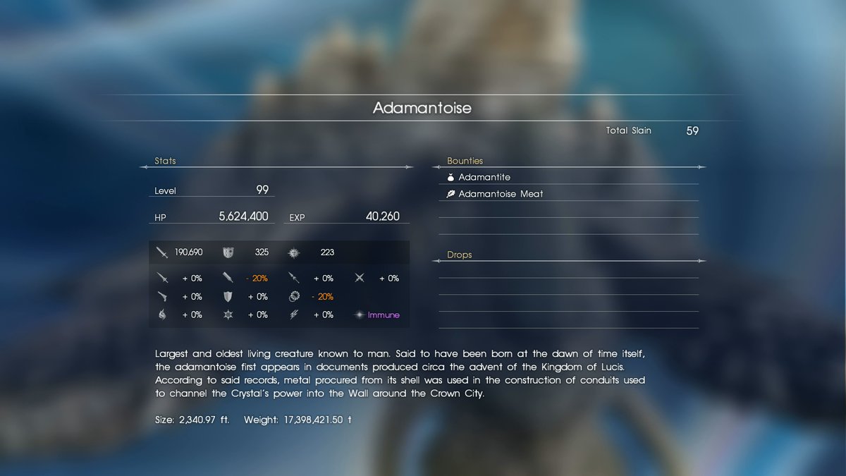 La tenue est classe, mais un peu déçu du bestiaire qui ne comporte pas d'illustration. Cependant pour la déconne, on peut voir la taille de chaque ennemi et même des invocs par rapport au perso principal et ça c'est marrant !