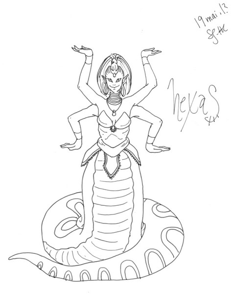 En voyant les autres membres poster leurs dessins, ça me redonner le goût de montrer les miens. V'là quelques jours, j'ai fait un dessin de Multibras (Hexas en anglais) de SoM. Je compte éventuellement le colorier sur l'ordi (faut que je me pratique avec ce médium qu'est l'ordi XD).