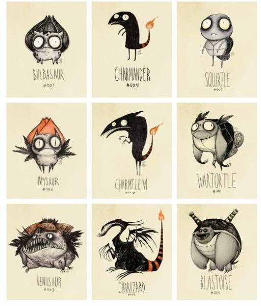 Sur le web, un mec redessine les premiers pokémons façon Tim Burton ... Je sais pas si vous connaissez mais c'est sympa